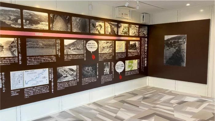 亀の瀬地すべりの歴史、対策事業の内容を解説※ショートツアーは「展示室2」から始まります。ショートツアー中に「展示室1」はご案内いたしませんが、ご来場の際はご自由にご覧いただけます。
