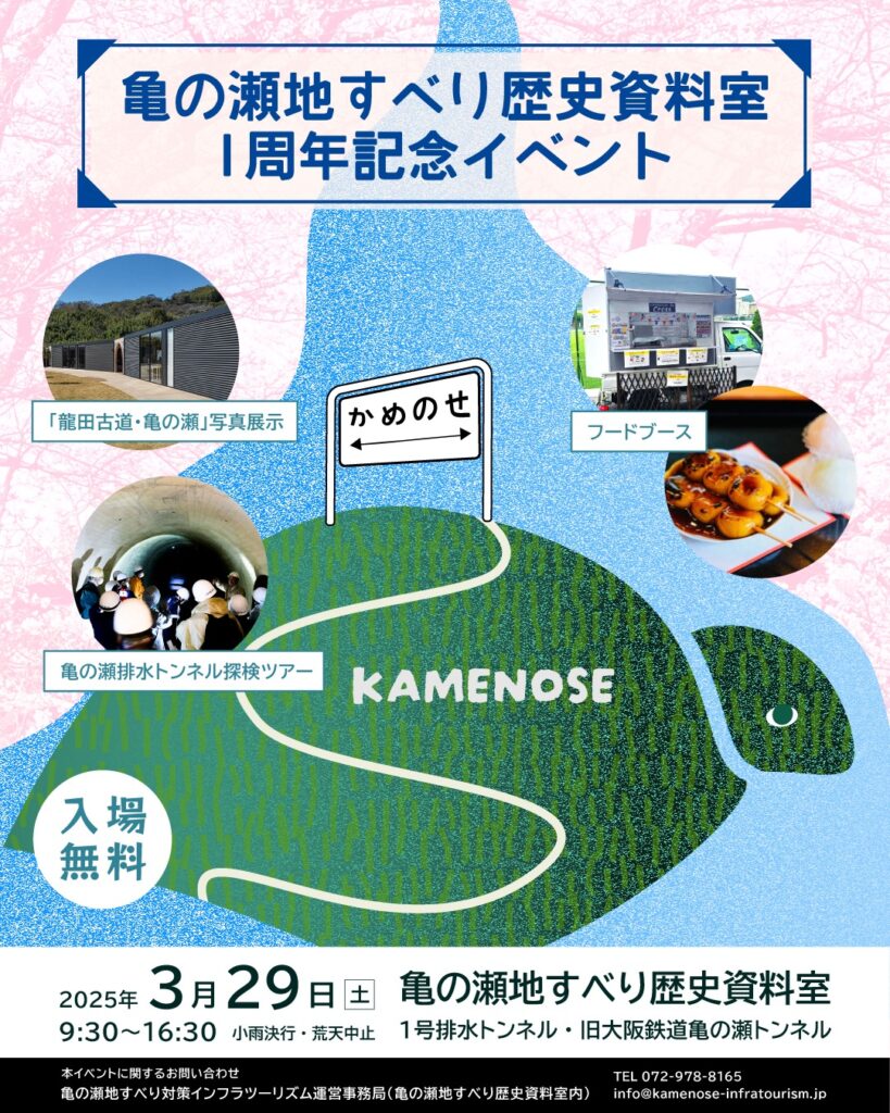 「亀の瀬地すべり歴史資料室」・「1号排水トンネル」・「旧大阪鉄道亀瀬隧道」などをご案内します。日本遺産「龍田古道・亀の瀬」ガイドが詳しく案内します。