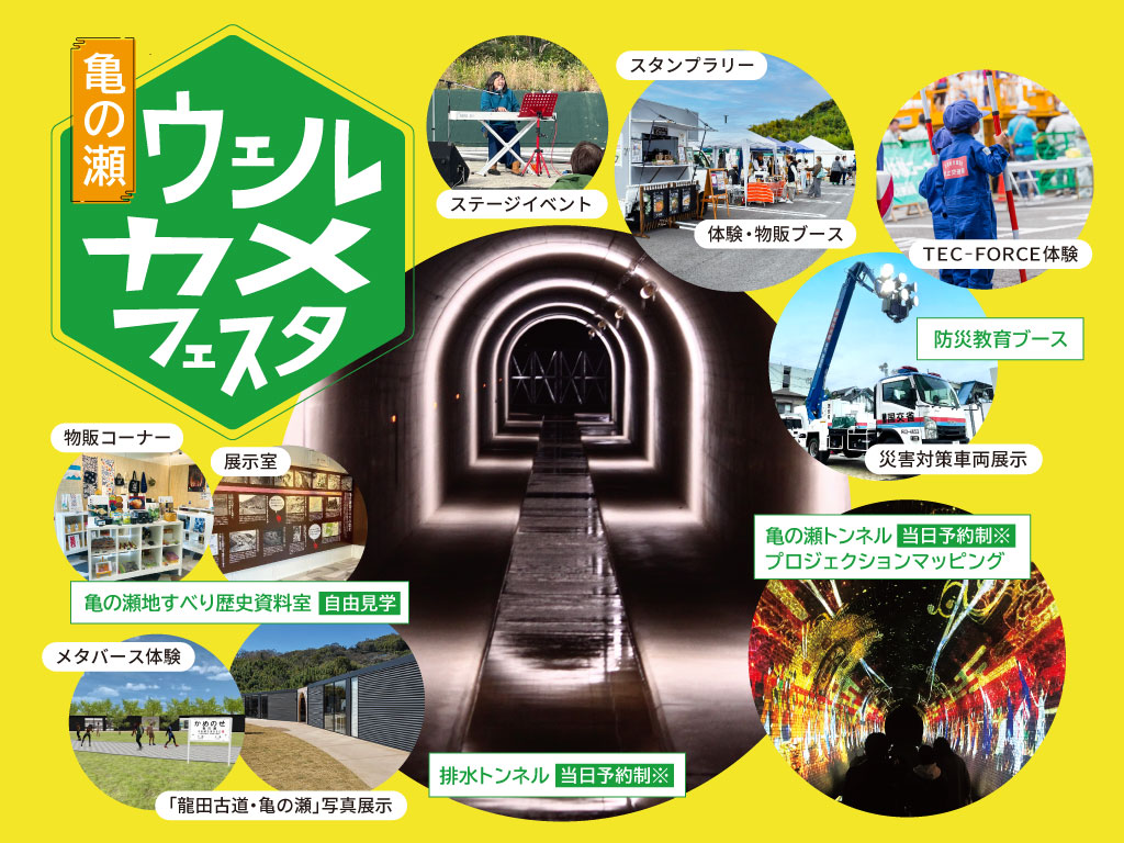 亀の瀬ガイドツアーでは「亀の瀬地すべり歴史資料室」「排水トンネル」「旧大阪鉄道亀瀬隧道(亀瀬隧道遺構)」などの見どころをガイドが丁寧に説明しながら案内をします。